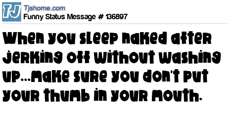 X says When you sleep naked after jerking off without washing up...make sure you don't put your thumb in your mouth.