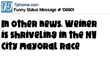 - # 60729 I'm convinced some of the news editors are getting a kick out of the weiner headlines: Anthony Weiner to resign: The congressman's rise and fall... (NY Daily News)
