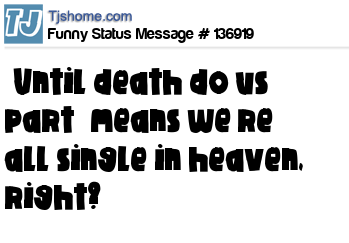 - # 38707 "Until death do us part” means we're all single in heaven, right?