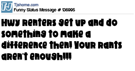 X says Hwy renters get up and do something to make a difference then! Your rants aren't enough!!!