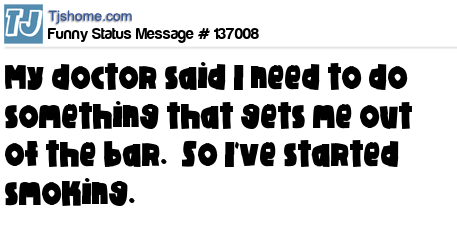 X says My doctor said I need to do something that gets me out of the bar. So I've started smoking.