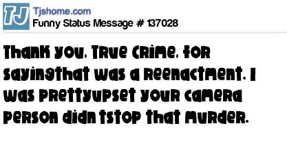 - # 155996 Thank you, true crime show, for saying that was a reenactment. I was pretty upset your camera person didn't stop that murder.