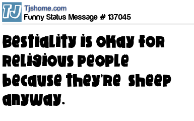 X says Bestiality is okay for religious people because they're sheep anyway.