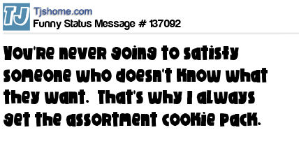 X says You're never going to satisfy someone who doesn't know what they want. That's why I always get the assortment cookie pack.