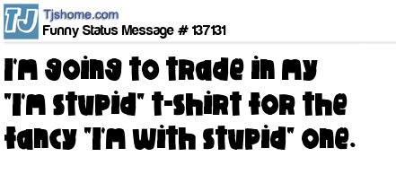 X says I'm going to trade in my "I'm stupid" t-shirt for the fancy "I'm with stupid" one.