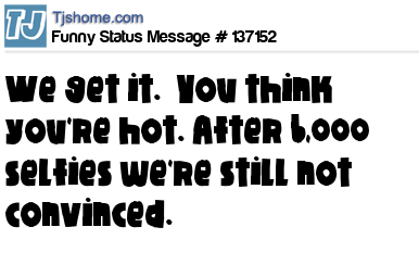 X says We get it. You think you're hot. After 6,000 selfies we're still not convinced.