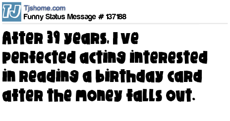 X says After 39 years, I’ve perfected acting interested in reading a birthday card after the money falls out.