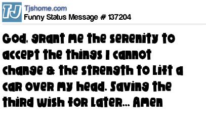 X God, grant me the serenity to accept the things I cannot change & the strength to lift a car over my head. Saving the third wish for later... Amen