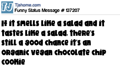 X If it smells like a salad and it tastes like a salad, there's still a good chance it's an organic vegan chocolate chip cookie