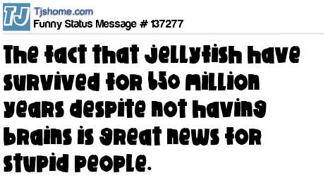 X says The fact that jellyfish have survived for 650 million years despite not having brains is great news for stupid people.