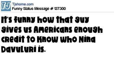 X it's funny how that guy gives us Americans enough credit to know who Nina Davuluri is.