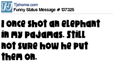 X says I once shot an elephant in my pajamas. Still not sure how he put them on.