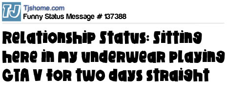 X Relationship Status: Sitting here in my underwear playing GTA V for two days straight