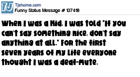 X says When I was a kid, I was told "If you can't say something nice, don't say anything at all." For the first seven years of my life everyone thought I was a deaf-mute.
