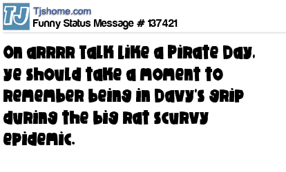 X says On arrrr Talk Like a Pirate Day, ye should take a moment to remember being in Davy's grip during the big rat scurvy epidemic.