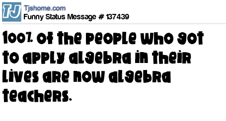 X says 100% of the people who got to apply algebra in their lives are now algebra teachers.