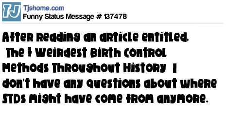 X says After reading an article entitled, “The 7 Weirdest Birth Control Methods Throughout History” I don't have any questions about where STDs might have come from anymore.