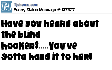 X says Have you heard about the blind hooker?.....You've gotta hand it to her!