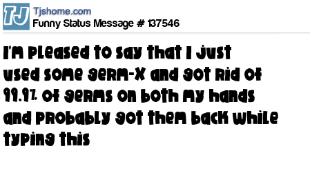 X I'm pleased to say that I just used some germ-X and got rid of 99.9% of germs on both my hands and probably got them back while typing this
