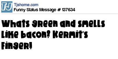 X says Whats green and smells like bacon? Kermit's Finger!