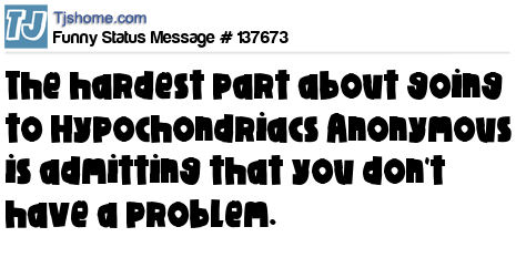 - # 65112 The hardest part about going to Hypochondriacs Anonymous is admitting that you don't have a problem...