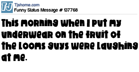X says This morning when I put my underwear on the fruit of the looms guys were laughing at me.
