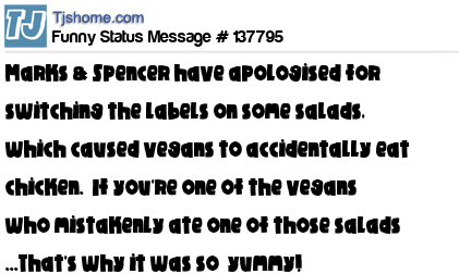 X says Marks & Spencer have apologised for switching the labels on some salads, which caused vegans to accidentally eat chicken. If you're one of the vegans who mistakenly ate one of those salads ...That's why it was so yummy!