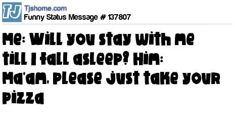 X says Me: Will you stay with me till I fall asleep? Him: Ma'am, please just take your pizza
