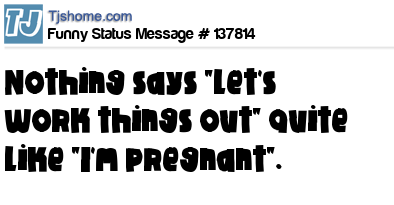 X says Nothing says "Let's work things out" quite like "I'm pregnant".