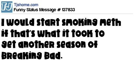 X says I would start smoking meth if that's what it took to get another season of Breaking Bad.