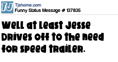 X says Well at least Jesse Drives off to the need for speed trailer.