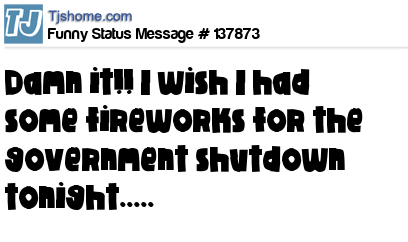 X says Damn it!! I wish I had some fireworks for the government shutdown tonight.....