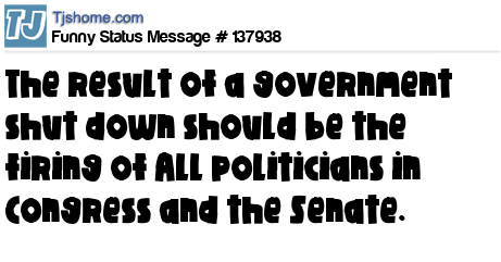 X says The result of a government shut down should be the firing of ALL politicians in Congress and the Senate.