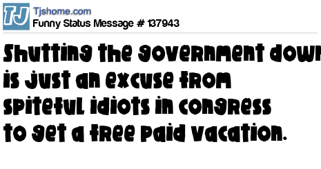 X Shutting the government down is just an excuse from spiteful idiots in congress to get a free paid vacation.