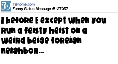X says I before E except when you run a feisty heist on a weird beige foreign neighbor...
