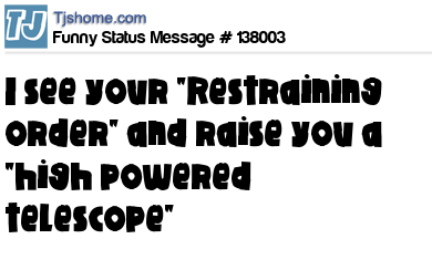 X says I see your "Restraining order" and raise you a "high powered telescope"