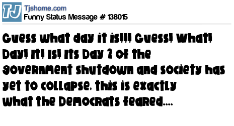 X says Guess what day it is!!! Guess! What! Day! It! Is! Its Day 2 of the government shutdown and society has yet to collapse, this is exactly what the Democrats feared....