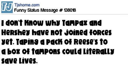 - # 140415 How have Tampax and Hershey's not released a combo pack yet?