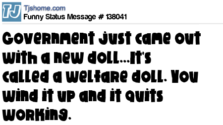X says Government just came out with a new doll...It's called a welfare doll. You wind it up and it quits working.