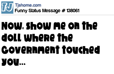 X says Now, show me on the doll where the Government touched you...