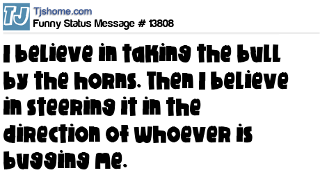 X I believe in taking the bull by the horns. Then I believe in steering it in the direction of whoever is bugging me.
