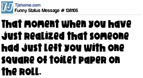 X says That moment when you have just realized that someone had just left you with one square of toilet paper on the roll.