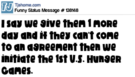 X says I say we give them 1 more day and if they can't come to an agreement then we initiate the 1st U.S. Hunger Games.