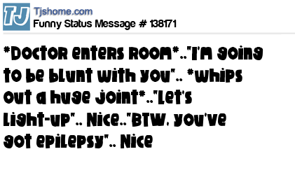 X *Doctor enters room*.."I'm going to be blunt with you".. *whips out a huge joint*.."Let's light-up".. Nice.."BTW, you've got epilepsy".. Nice
