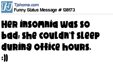 X Her insomnia was so bad; she couldn't sleep during office hours. :))