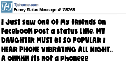 X says I just saw one of my friends on Facebook post a status like. MY DAUGHTER MUST BE SO POPULAR I HEAR PHONE VIBRATING ALL NIGHT.. A okkkk its not a phoneee