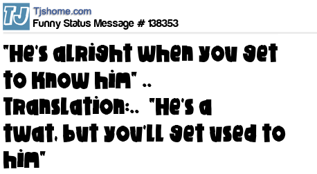 X "He's alright when you get to know him" .. Translation:.. "He's a twat, but you'll get used to him"