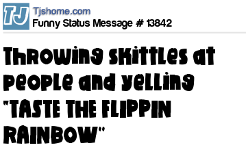 - # 80041 throwing skittles at random people and saying " taste the rainbow b*tch!"
