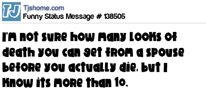 X says I'm not sure how many looks of death you can get from a spouse before you actually die, but I know its more than 10.