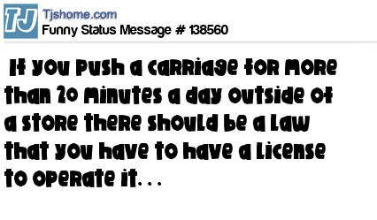 X says If you push a carriage for more than 20 minutes a day outside of a store there should be a law that you have to have a license to operate it. . .